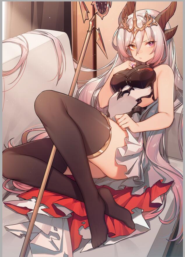 此刻,米菈蒂身上穿着一身形似修女服的白色服侍,下身是一双绣有金色十字的黑色腿袜,最显眼的,莫过于她的头顶,多出的那对朝天的弯角。